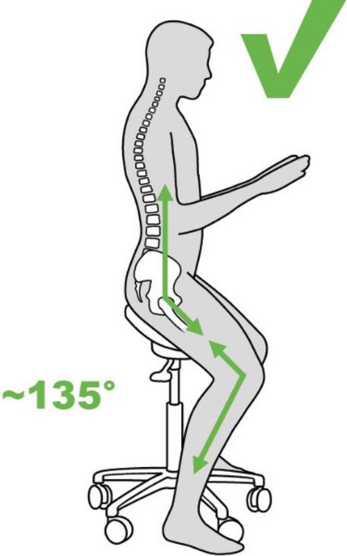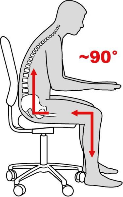 Chybné držanie tela stresuje všetky tkanivá v našom tele, pretože svaly, kosti a väzy pracujú sústavne mimo svojej komfortnej zóny. Toto je dôvod bolesti, ku ktorej dochádza počas pracovného dňa. Ako už bolo spomenuté, základom nášho správneho sedenia je poloha panvy. Udržiavanie správnej polohy panvy pri udržaní nôh vpredu si vyžaduje viac sily z ohýbačov bedier, ako sú schopné produkovať. Ďalej kostná štruktúra bedrových kĺbov túto pozíciu znemožňuje. Výsledkom je, že sedenie s nohami vpredu zabraňuje správnej polohe panvy, čo spôsobuje hrbenie sa.
