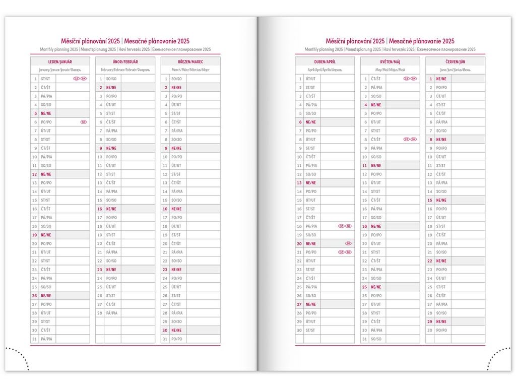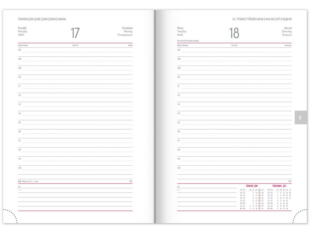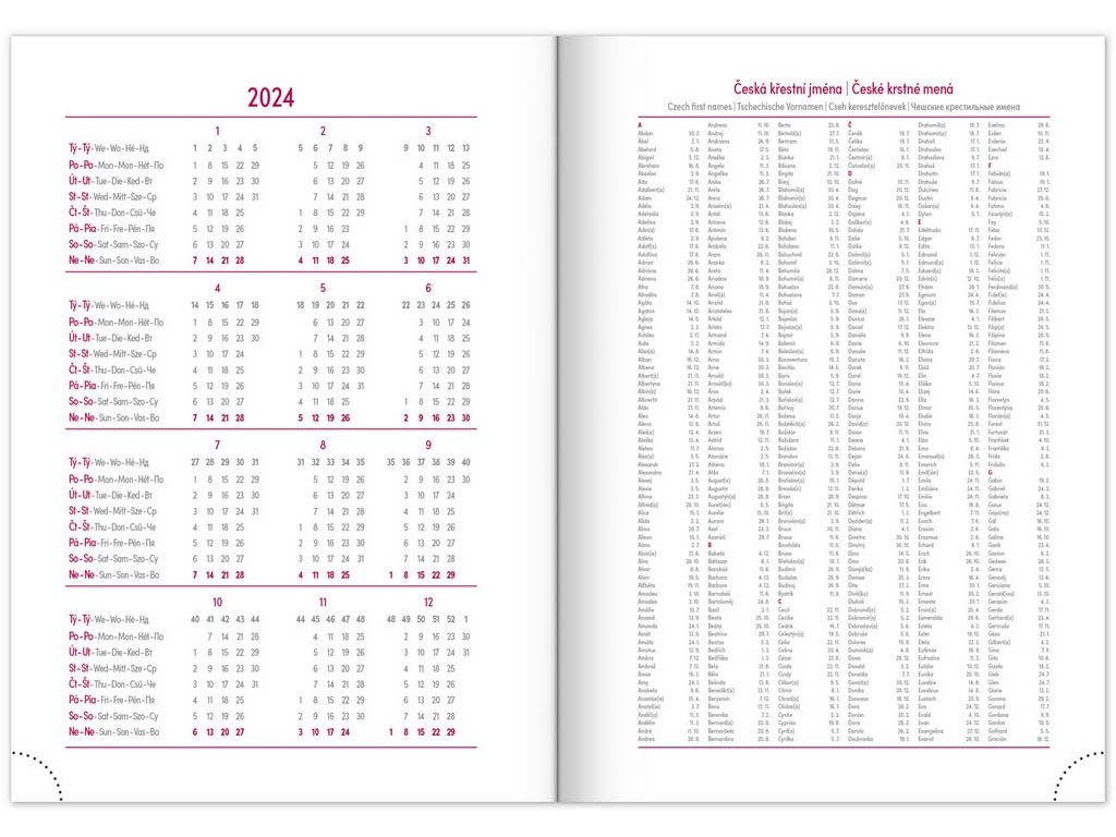 Denný diár Aprint 2024 v modrej farbe. Klasika i elegancia, najžiadanejší povrch, na ktorý je možné ľahko raziť firemné logá s jemnou štruktúrou. Nová kolekcia stavila na osvedčené farby, ktoré dopĺňa nová razba letopočtu. Denný rozvrh s česko-slovenským kalendáriom a doplnkovou angličtinou, nemčinou, maďarčinou a ruštinou.