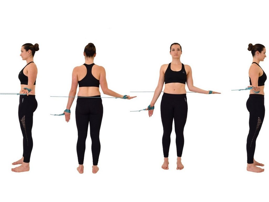 - Lano je potrebné ukotviť vo výške pupka a cvičiť pred zrkadlom kvôli kontrole správneho vykonávania pohybov.