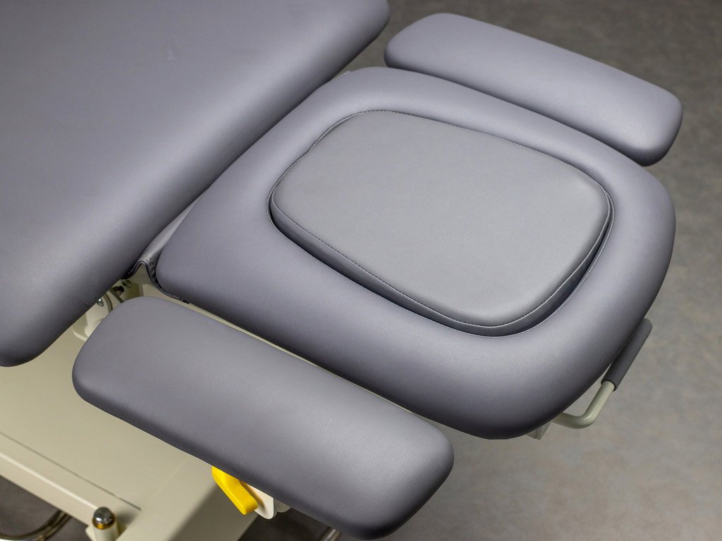 Lehátko je vybavené aj nastaviteľnými podrúčkami a otvorom na tvár. Špeciálne profilovaný vankúš sa dokonale prispôsobí tvári a poskytuje pacientovi maximálny komfort.