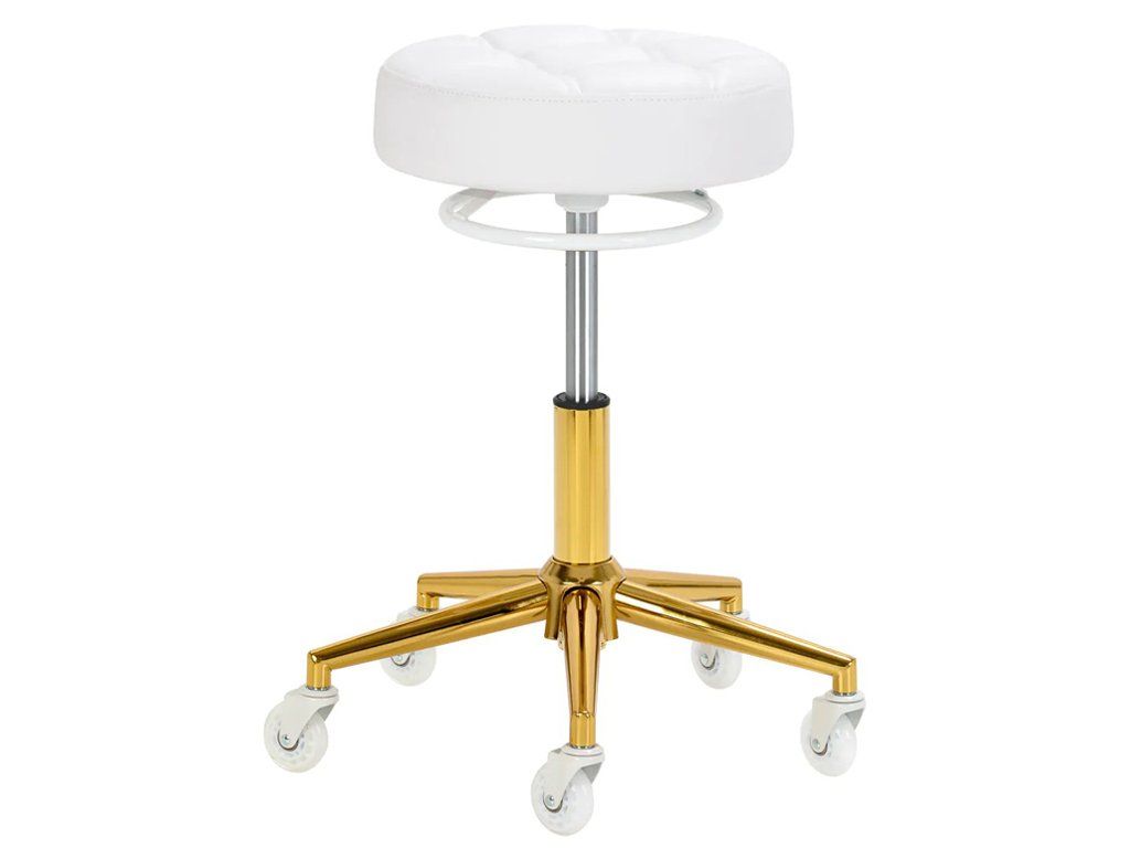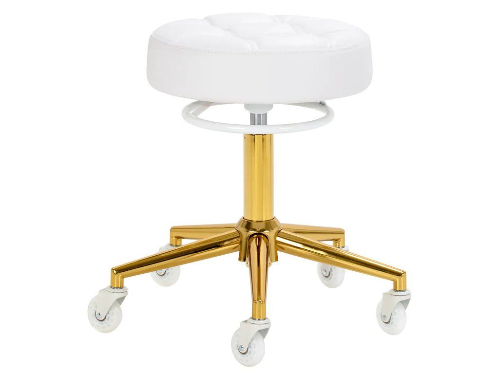 Kozmetická stolička Gabbiano D054G ponúka ideálnu kombináciu komfortu, funkčnosti a elegantného dizajnu. Zlaté prevedenie základne dodáva stoličke luxusný a profesionálny vzhľad, ktorý vynikne v každom salóne.