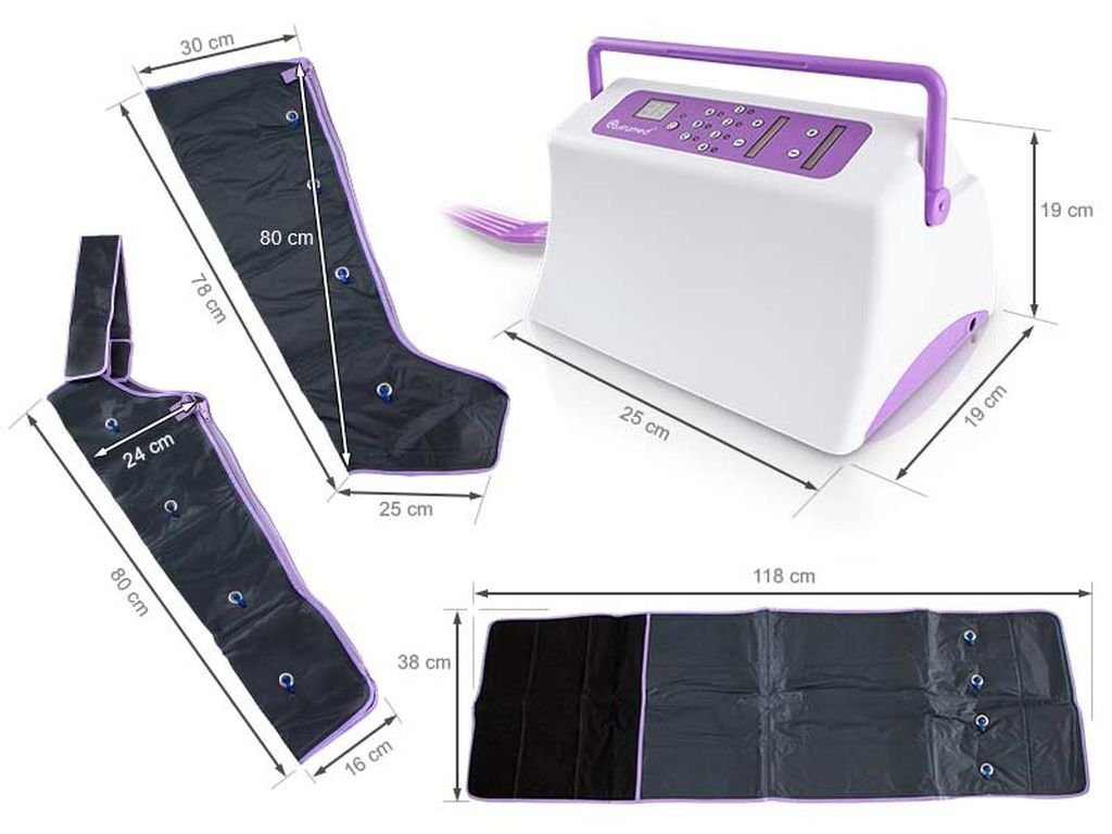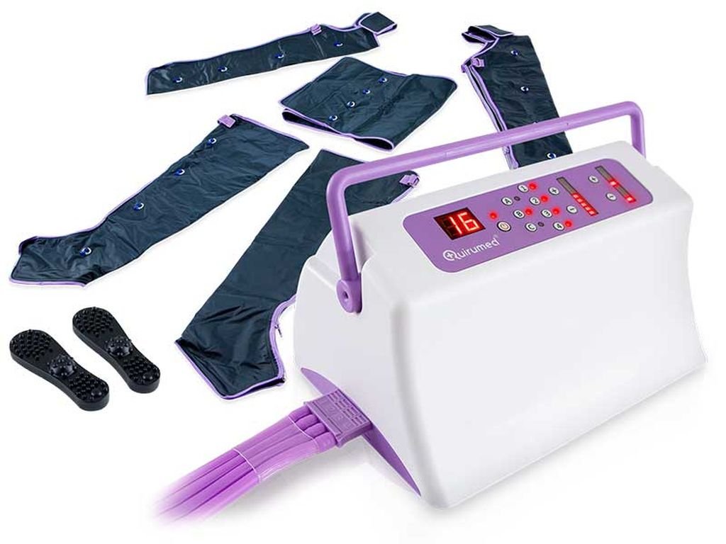 Prístroj na Lymfodrenáž Quirumed 9500 obsahuje návlek na nohy, brušný pás a návlek na ruky. Vďaka širokému displeju je ľahko ovládateľný. Dobu prevádzky možno nastaviť na 10, 20 a 30 minút.
