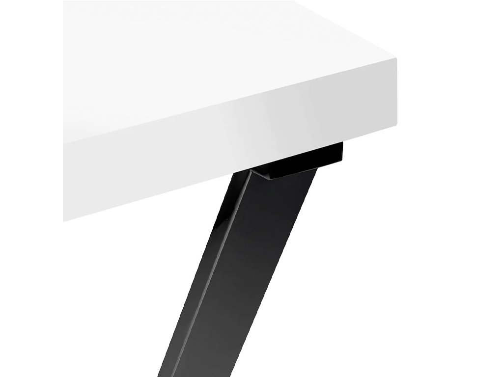 Dizajn stola podčiarkujú geometricky tvarované čierne nohy, ktoré dodávajú konštrukcii vizuálnu ľahkosť a moderný charakter. Lakovaný povrch pôsobí luxusne a robí zo stola výrazný prvok interiéru. Vďaka svojej forme sa hodí do menších aj priestranných salónov a prirodzene zapadne do moderných, elegantných konceptov.