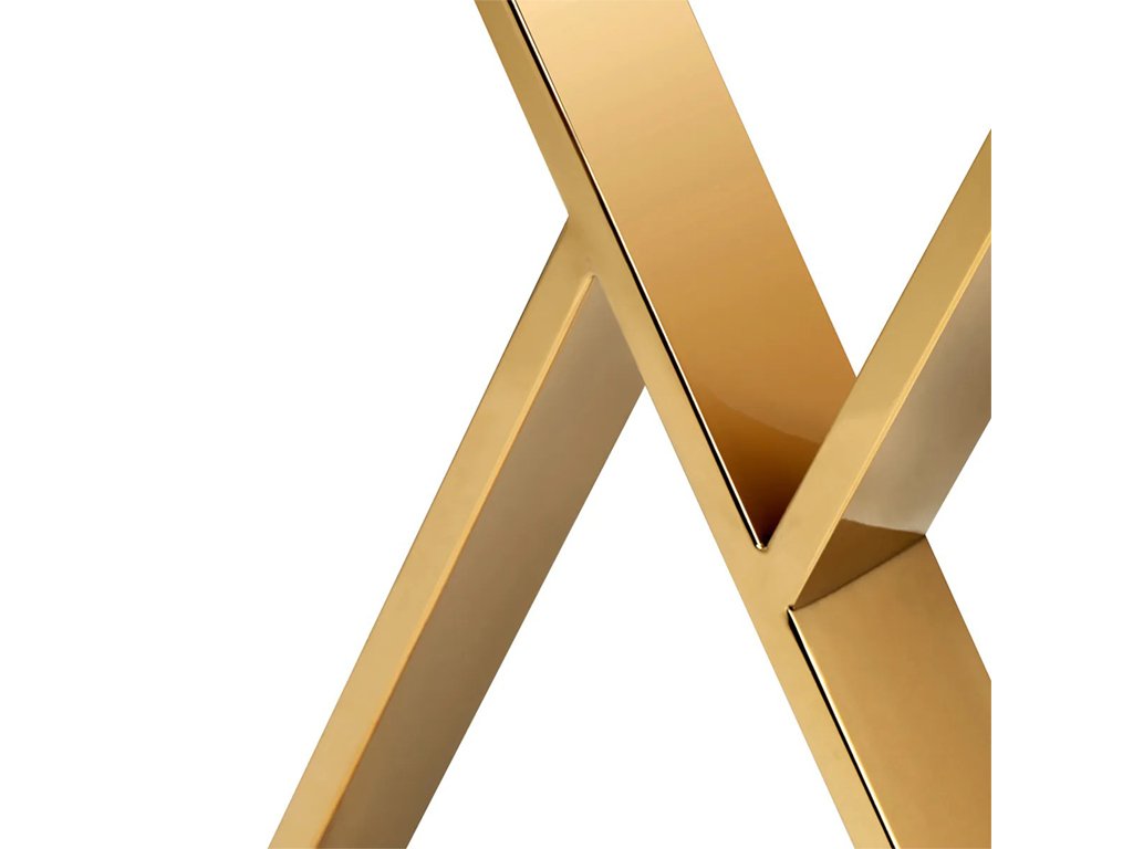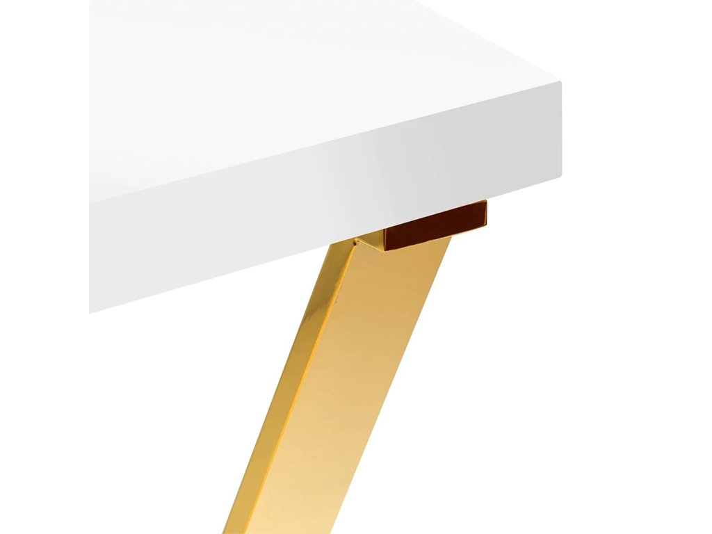 Dizajn stola podčiarkujú geometricky tvarované zlaté nohy, ktoré dodávajú konštrukcii vizuálnu ľahkosť a moderný charakter. Lakovaný povrch pôsobí luxusne a robí zo stola výrazný prvok interiéru. Vďaka svojej forme sa hodí do menších aj priestranných salónov a prirodzene zapadne do moderných, elegantných konceptov.